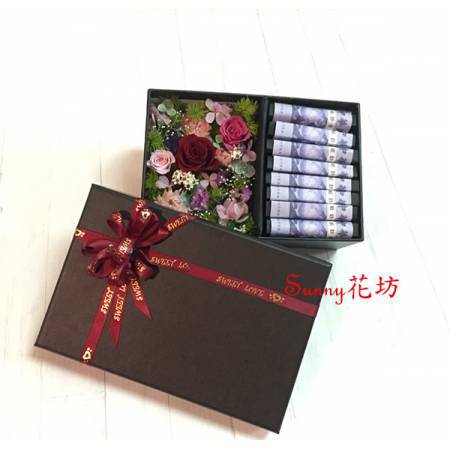 U2858 招財貓永生玫瑰乾燥花禮特價/2,600