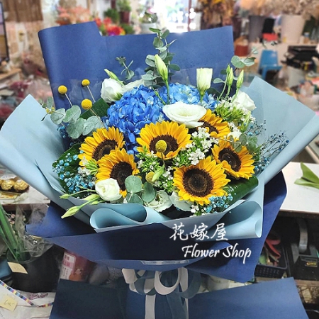 A151 等你下課 向日癸繡球花束 ...特價/1,600