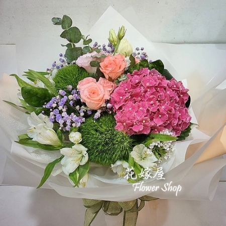A143 心願祝福平安 繡球玫瑰花束...特價/1,300