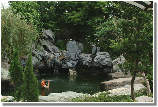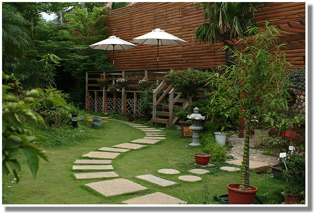 此處的庭園造景呈現日式風情,園內綠樹環繞,繽紛的花卉盆栽與石燈籠、竹蘺巴等點綴其間,並設有假山水池及咖啡座。庭園旁架設有醒目的原木板牆,使此處自成一小巧別緻的空間。待進了溫室內更是別具洞天,內中陳列了各種蘭花、觀葉植物盆栽及造景用之石材、水砵等飾品。還設有頗具浪漫情調的星空咖啡屋,在布置如星空般的昏暗屋內,以光影之變化營造出夢幻氣氛,使這裡也成了約會、談心的好地方。