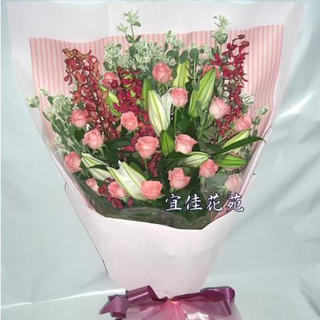 A010 玫瑰百合花束 生日花束 情人節花束