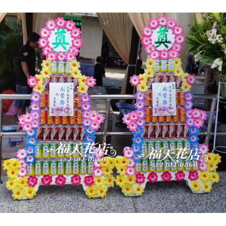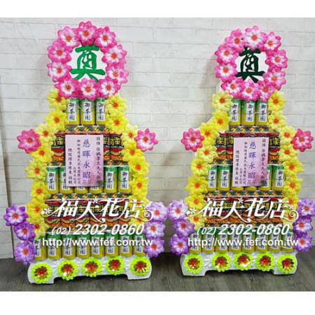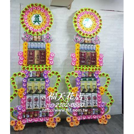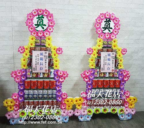 台北市懷愛館專送 告別式水果籃 罐頭塔 永生花燈柱 蝴蝶蘭出租 平安米罐頭塔 台北花店 福大花店 網路花店 蓮花塔專送 靈獅